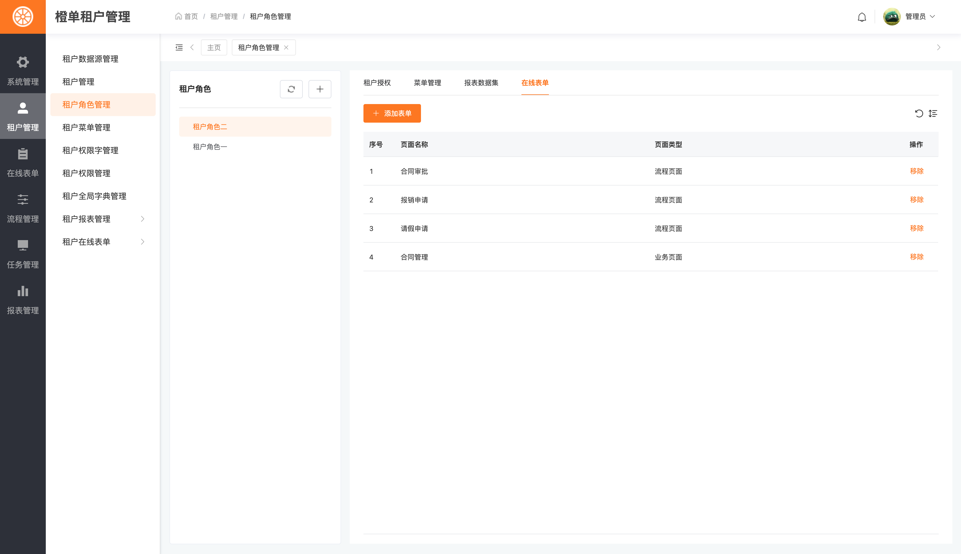 - 租户管理演示 https://tenantadmin.orangeforms.com