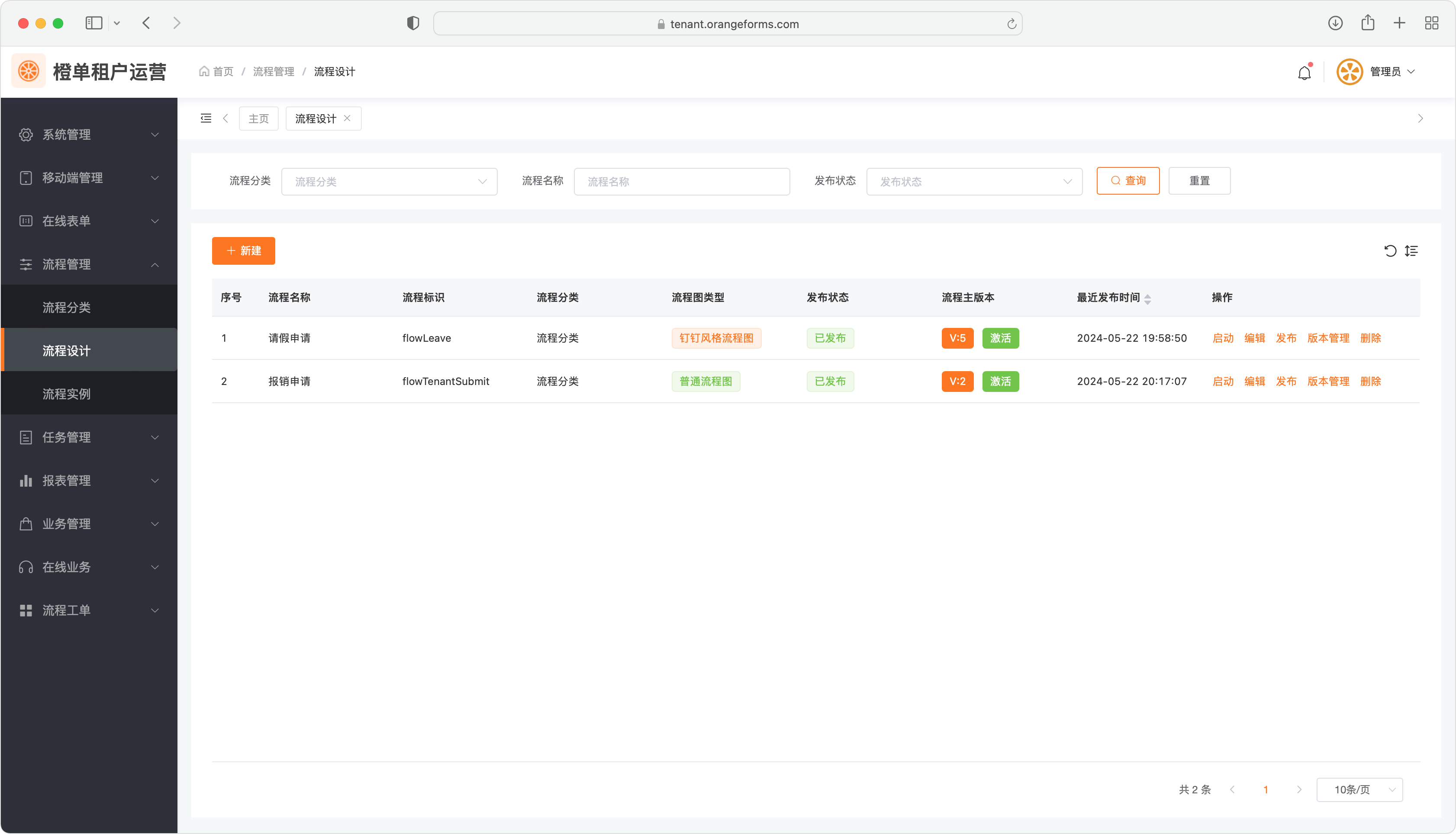 - 租户管理演示 https://tenantadmin.orangeforms.com